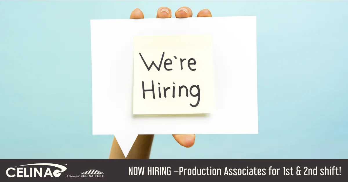 Please visit http://gettent.com to learn more about our Company. Celina Tent, Inc. is an Equal Opportunity Employer.