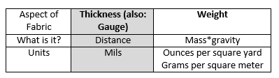 Weight and density have become the industry standard for all industrial textiles including tents, tarps, upholstery, etc., when comparing and discussing various fabrics. The density of these fabrics is mainly attributed to its durability, not its thickness.