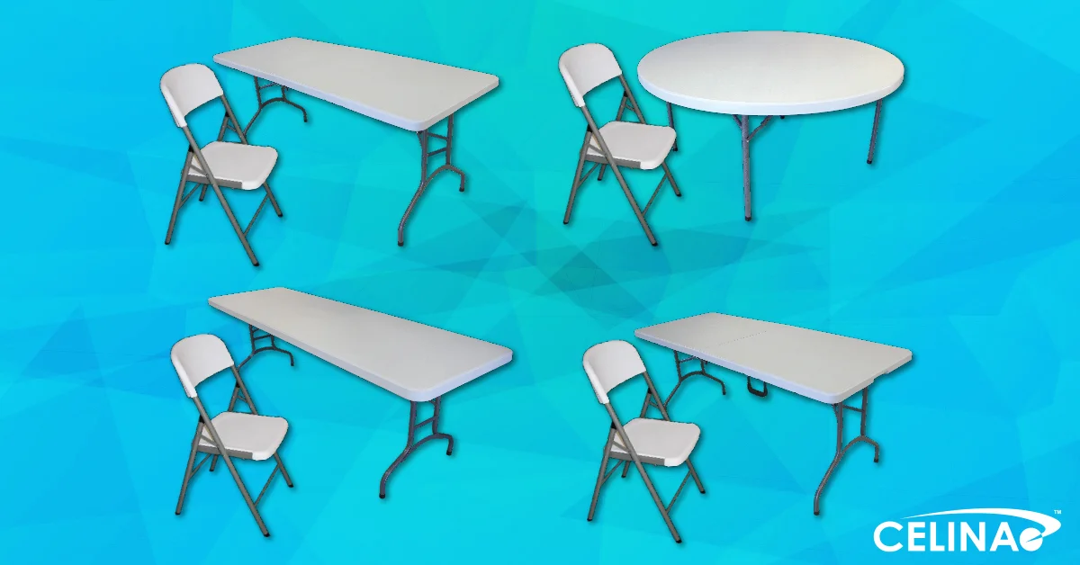 Tables and chairs. Chairs and tables. They go together like a pen and a page, a needle and thread, or peanut butter and jelly. Which is why Celina Tent has created combo sets of our popular resin chairs and tables in order get you everything you’ll need to host your next event, whether in your home or as a rental hall or organization.
